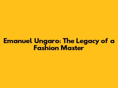 Emanuel Ungaro: The Legacy Of A Fashion Master