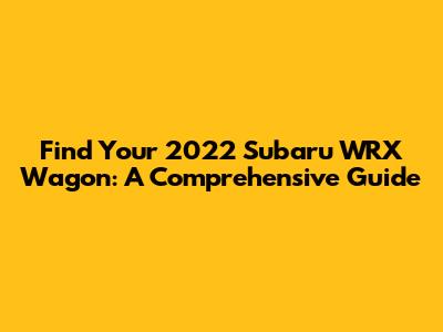 Hey there, car enthusiasts! Are you on the hunt for a 2022 Subaru WRX Wagon? Well, you've come to the right place! Finding the perfect car can be a real adventure, and the 2022 WRX Wagon is definitely a head-turner. In this article, we'll dive deep into everything you need to know about finding a 2022 Subaru WRX Wagon for sale. We'll explore the features that make it stand out, where to look, and what to consider before taking the plunge. So, buckle up, guys, because we're about to embark on a journey to find your dream car!