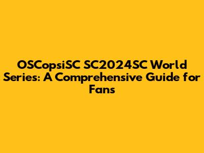 OSCopsiSC SC2024SC World Series: Your Ultimate Guide