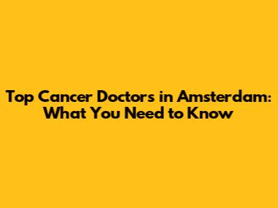 Top Cancer Doctors In Amsterdam: What You Need To Know